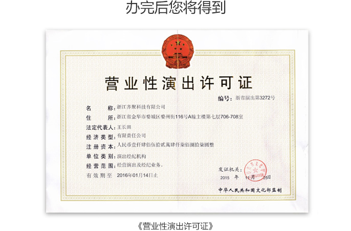 拨打15928745675  15928745675服务热线,咨询更多关于营业性演出许可证详情。